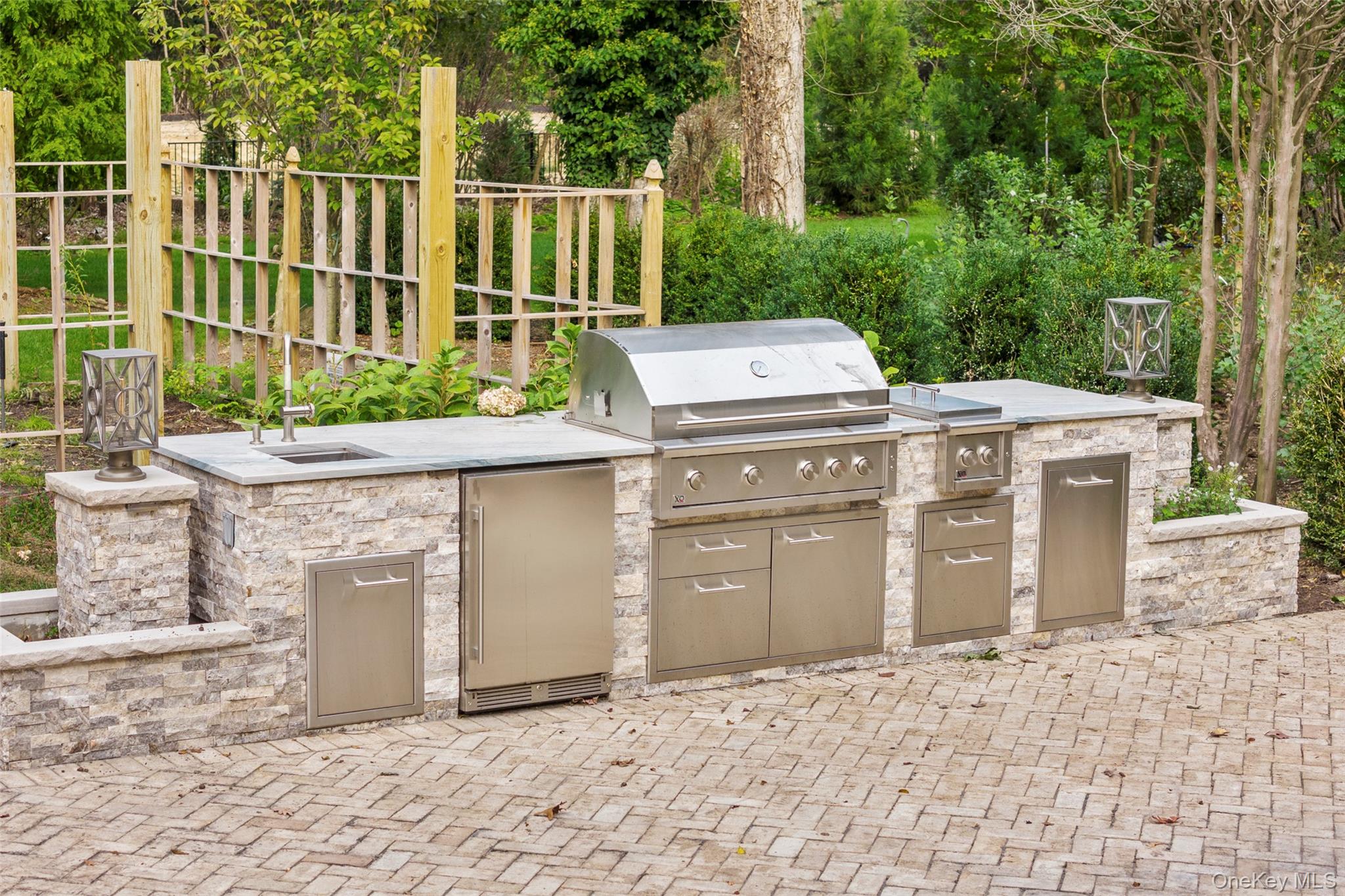 Incredible improved 1.93 acre property in Nissequogue welcomes custom new construction to take advantage of the existing foundation of the formerly 3500 sq ft home. Extensive landscaping in place with specimen plantings, lighting, irrigation, lawn and garden. Hardscape includes upscale outdoor Kitchen, Fire Pit, impressive stone patio and pool surround for in ground Gunite Pool. All pool equipment and systems recently updated. In ground 1000 gallon Propane tank, newly paved drive with drainage and Belgian block edging.