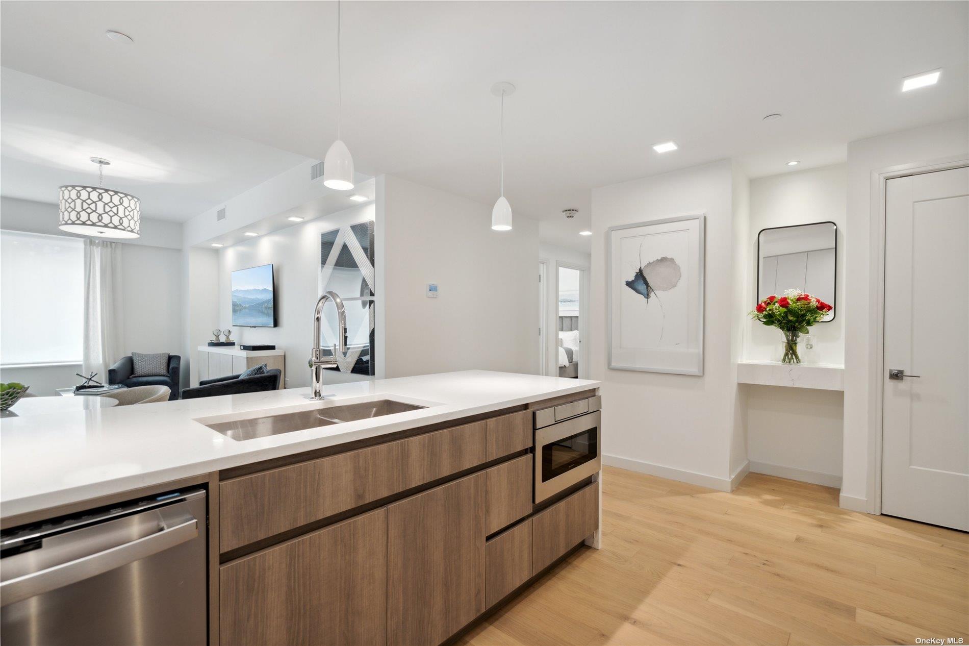 Immediate occupancy available in The Rose at Great Neck. 40-New Luxury Condominiums on the North Shore of Long Island. This brand new boutique mid-rise building is now over 40% sold out. Offering an unparalleled luxury residential experience and amenities including virtual doorman services, welcome lobby, resident lounge with YouTube TV, plus gym fitness center with treadmill, bike and free weights. Retreat to the rooftop common area and hang out at the perfect place to unwind with seating and enjoy the outdoors that include distant views towards New York City. Private indoor garage parking and outside private lot parking. The earliest residents have preferred choice of parking spaces. The allure of The Rose extends beyond its walls as residents enjoy instant access to the Village of Great Neck Estates Waterfront Park featuring Olympic sized swimming pool plus small pool, 7 tennis courts plus indoor tennis court in a bubble, marina and dock area, direct waterfront esplanade with views of Little Neck Bay, Douglas Manor and the Throgs Neck Bridge, Whitestone Bridge, shoreline access, baseball and soccer fields, playground, basketball, pickle ball, handball courts and snack bar. The Rose was creatively designed by famed architects Mojo Stumer with the very best of quality and modern sophistication. Exterior brick and metal panels accent the solid structure. Three floors high with a mix of 1 bedroom, 2 bedroom and 3 bedroom options in this new building. Unit 202 is two bedrooms and two baths, approximately 1,172 sqft, private laundry. Big windows in the condo bring in natural light. Sleek modern kitchens to spacious living areas and stunning bathrooms, every aspect of this building reflects a commitment to luxury and comfort. Various golf courses within close proximity and nearby to the famous Americana Manhasset shopping. Just 0.7 miles to the Great Neck LIRR train station that boasts a direct route to Penn Station and now Grand Central Station in Manhattan. Enjoy the suburban lifestyle at the pinnacle of luxury living in Great Neck with all its town amenities just 19 miles to midtown Manhattan and a short jaunt to international airports. Welcome home.
